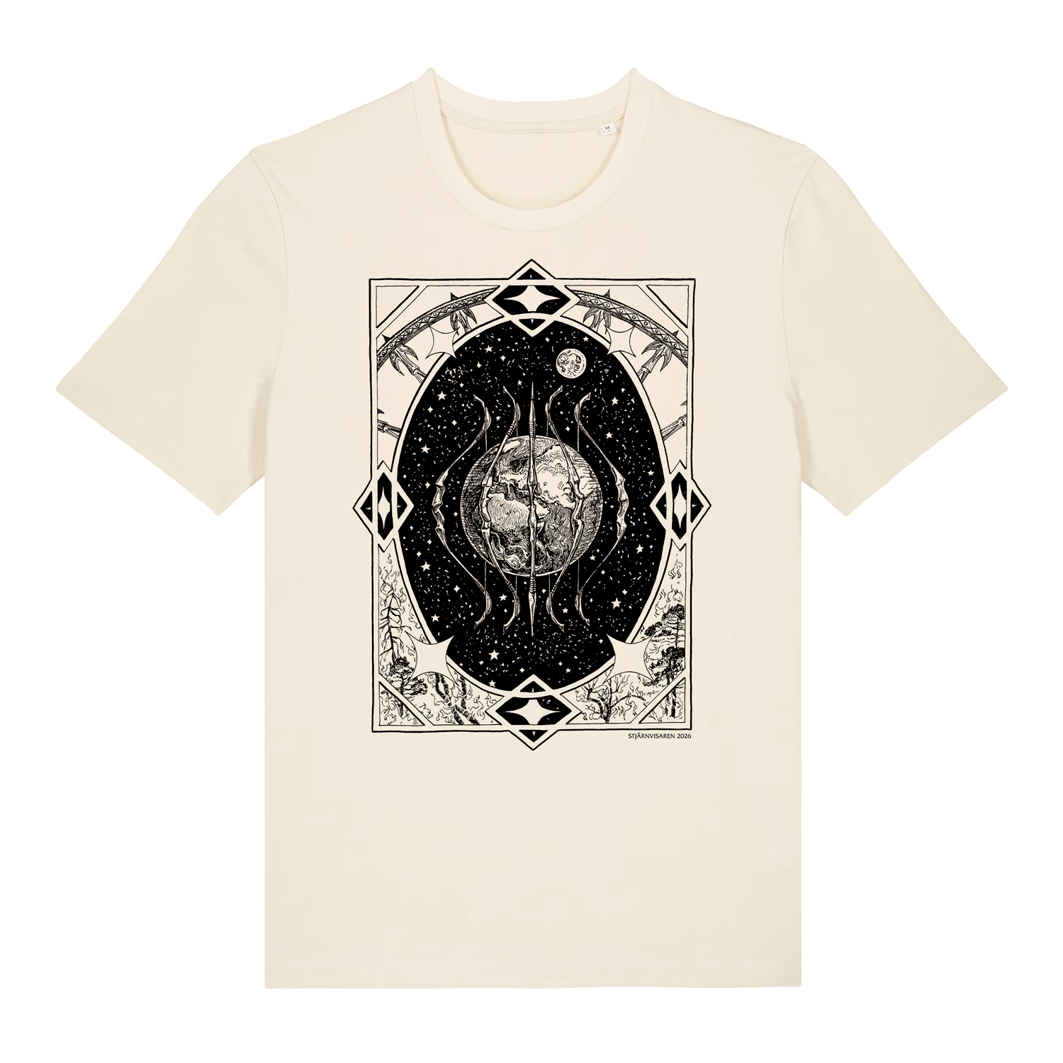 Ekologisk naturvit t-shirt framtagen för att bära illustrationerna från Stjärnvisaren 2026 skapade av Hanna Virdarson.